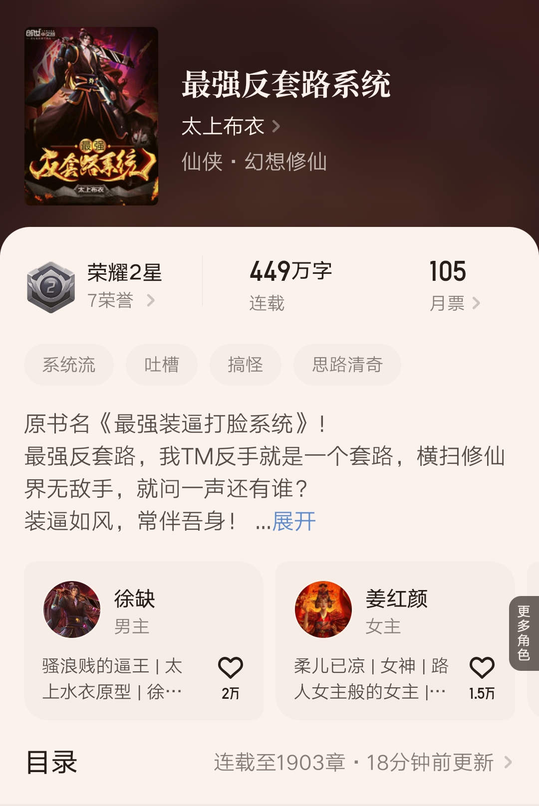 后来也开了新书《修仙界最后的单纯》,只是写成了《最强反套路系统》的后传,我是没想到的。