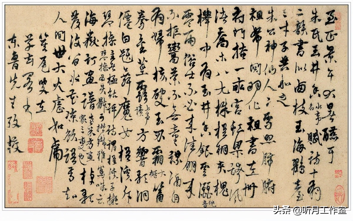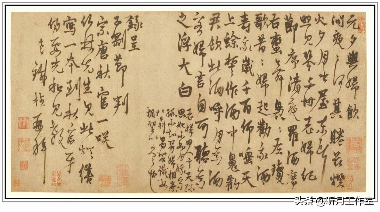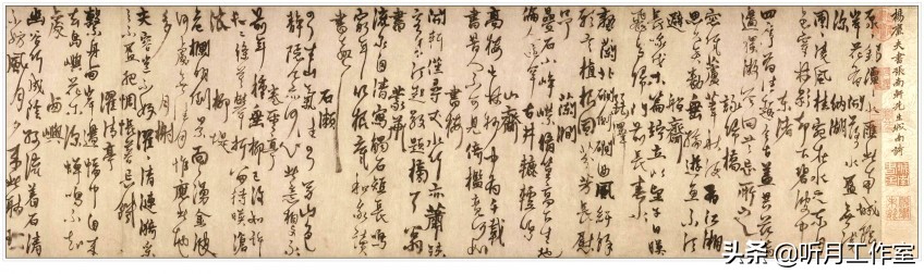 杨维桢草书《梦游海棠诗卷》,纸本35×74厘米,天津博物馆藏。