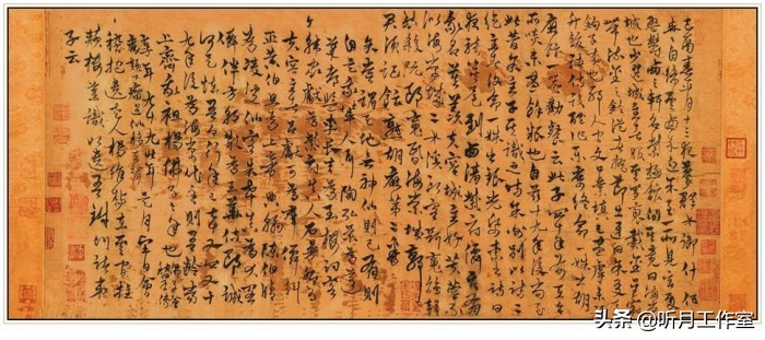 杨维桢《壶月轩记》(拼图)该册页共十开,黄笺本,其中杨维桢墨迹五开,元人题跋五开。著录于《杨铁崖文集全录》、《(弘治)上海志》、山本悌二郎《澄怀堂书画目录》、张珩《木雁斋书画鉴赏笔记》等。