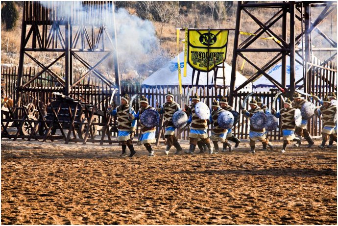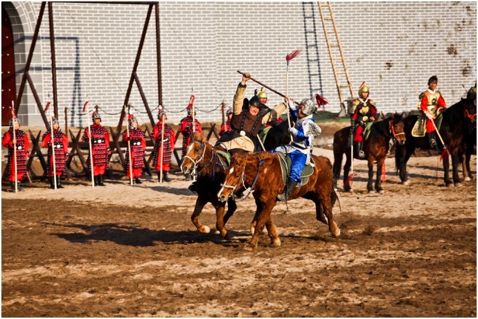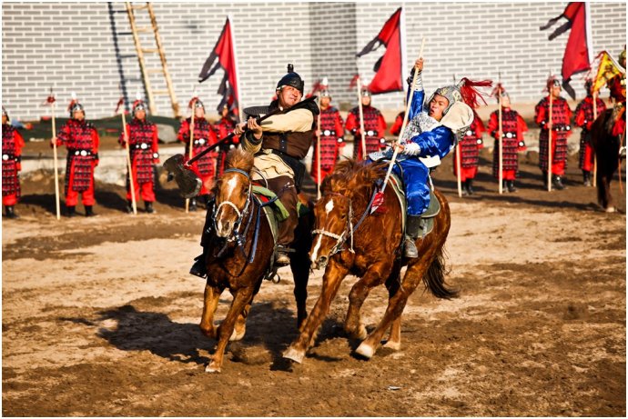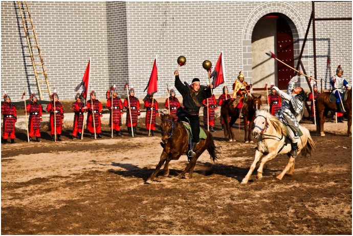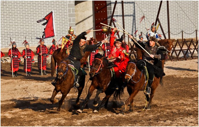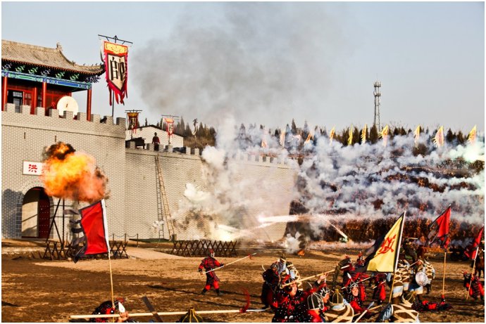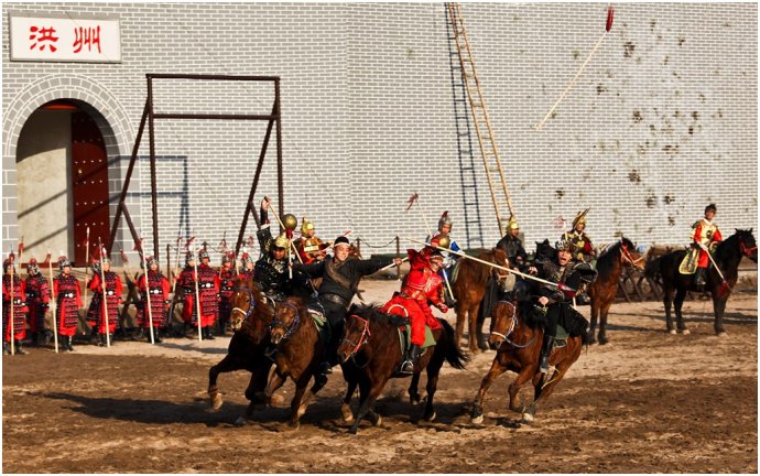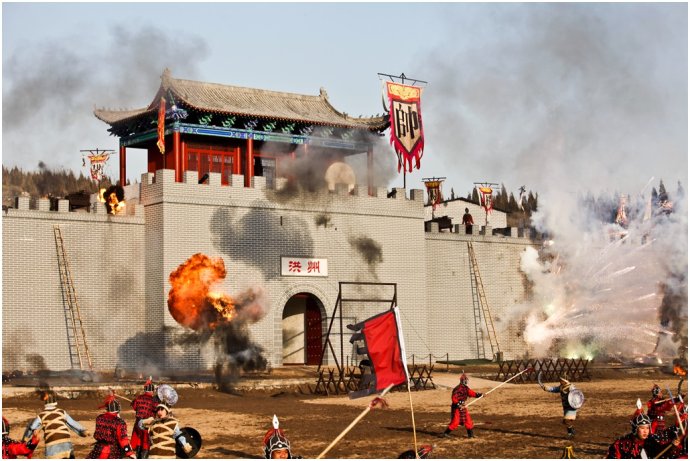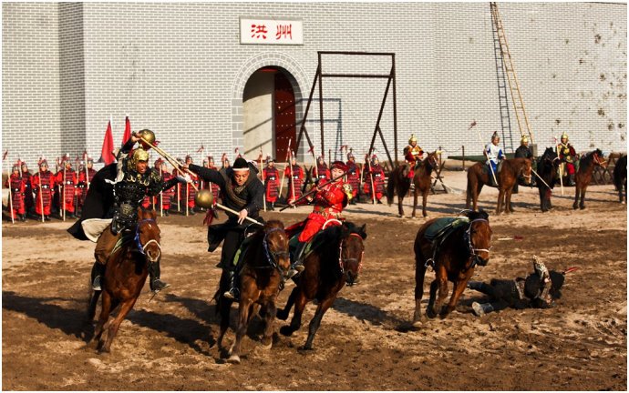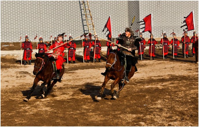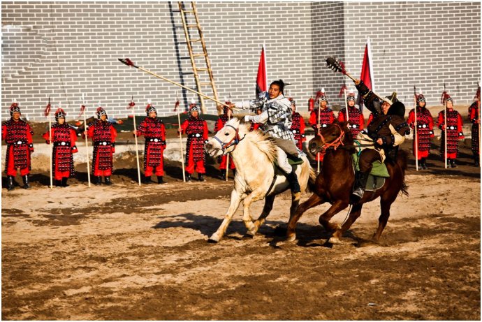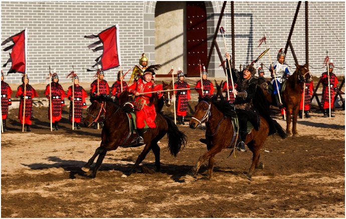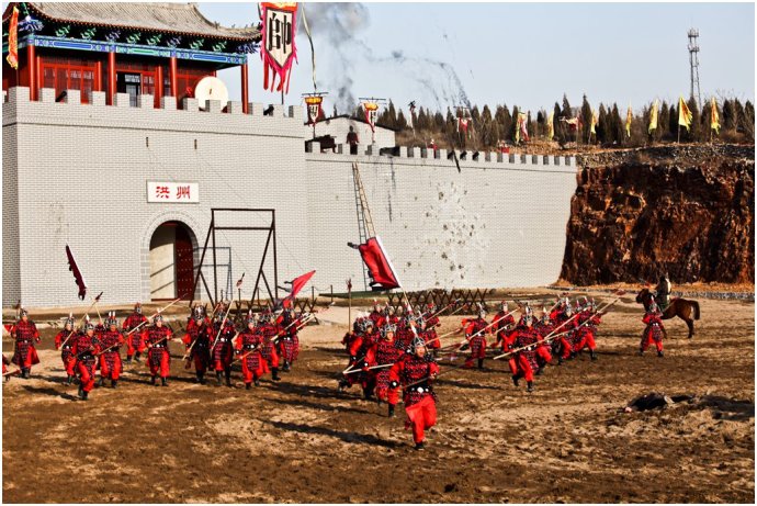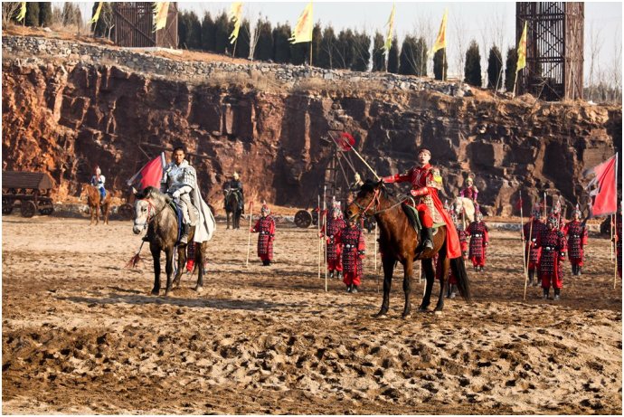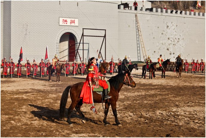 《穆桂英大战洪州》大型实景马战史诗剧近期在新乡市辉县龙山响水河乡村旅游区演出。《穆桂英大战洪州》以“炮火、攻城、马战、特效”为主要特色的大型实景马战,精挑细选500名演员,100多匹骏马、数辆仿真战车,演出阵容强大,艺术品位高,加入了现代高科技的舞台特效,精彩刺激,进一步特显中国战将独有的情怀和可歌可泣的精神。