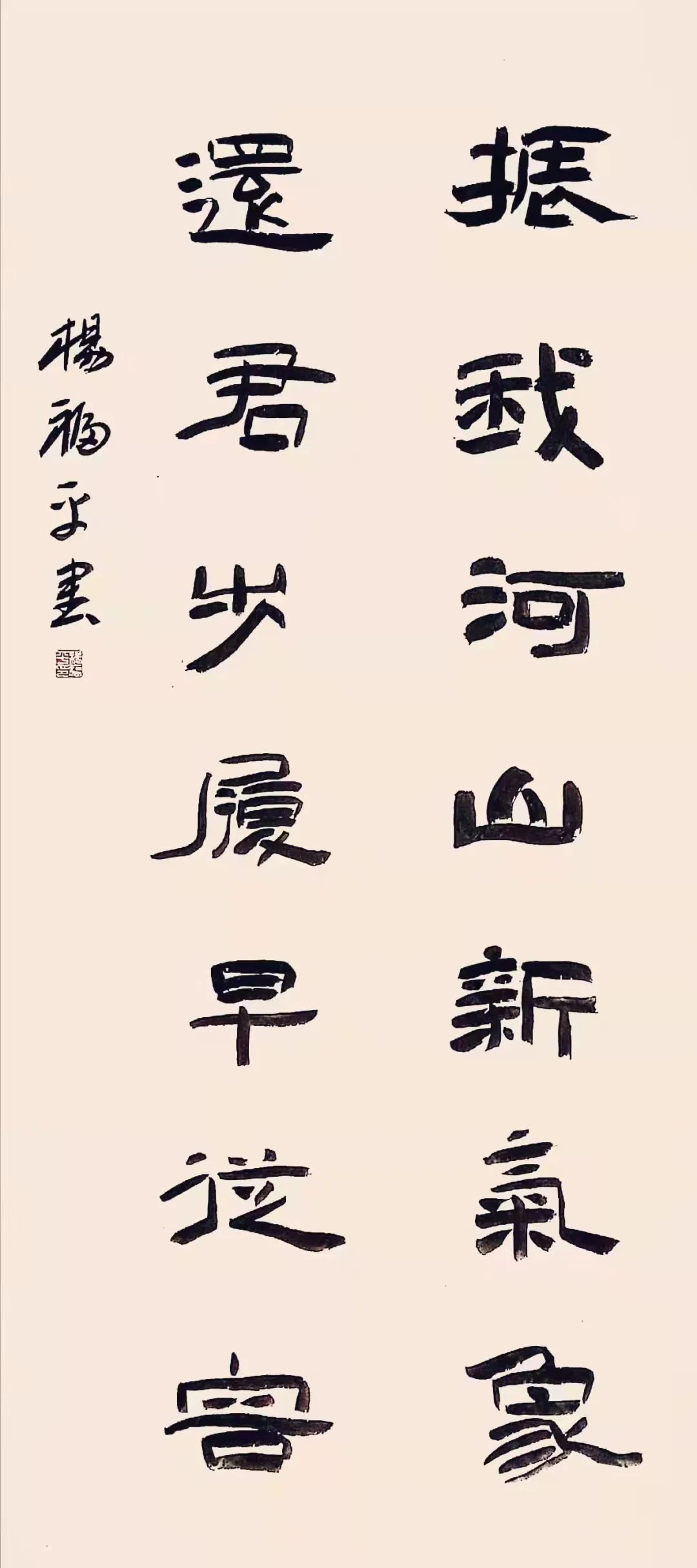 释文:振我河山新气象,还君步履早从容。 作者:杨福平