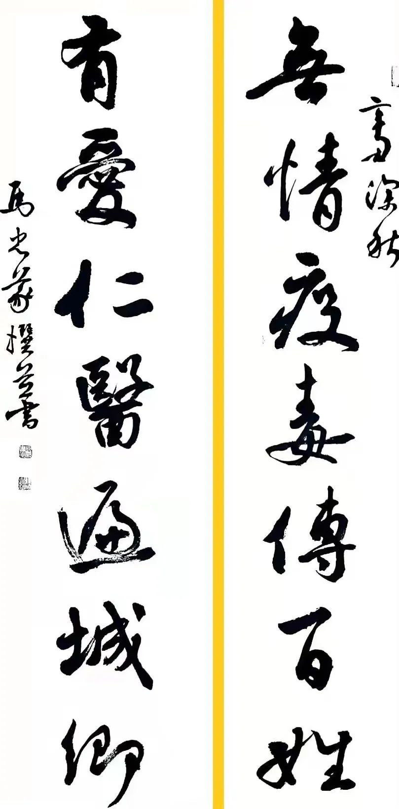 释文:无情疫毒传百姓,有爱仁医遍城乡。