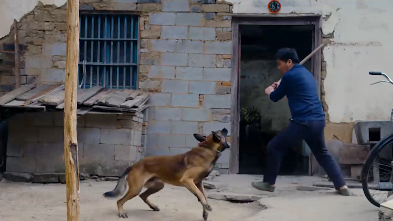 一进村就看见他们正围在一起,看到狼狗的时候,他内心非常不忍。
