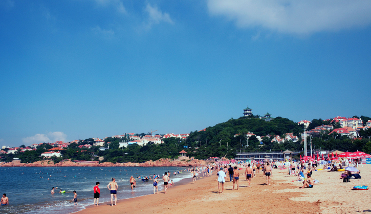 在7月份,青岛的平均最高气温不到25℃,近海气温只有20℃左右,水里的温度还要低一些。