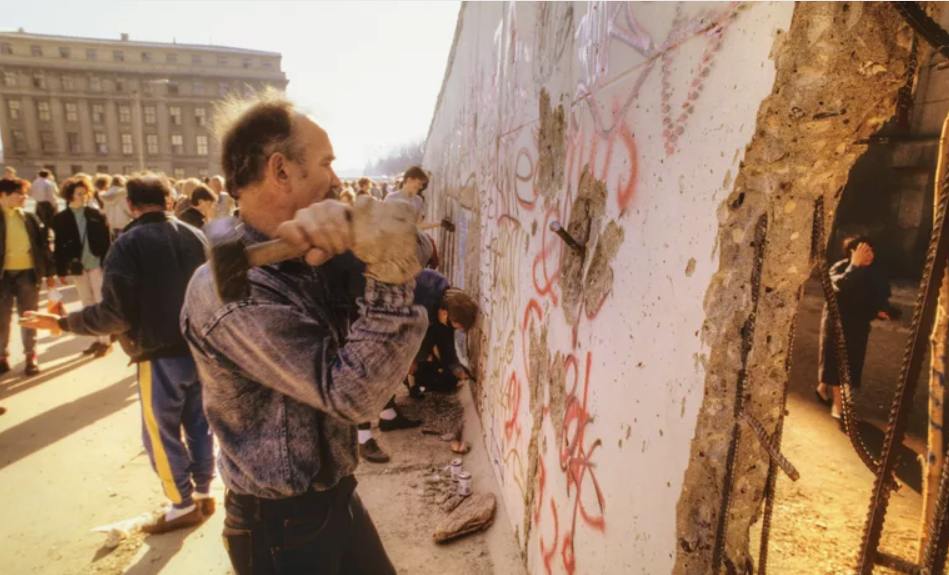 没想到29个月后,里根的演讲成为了现实。1989年11月9日,面对东德的汹涌民意,苏联不得不允许东德民众拆掉柏林墙。矗立了28年的柏林墙,像纸牌屋一样垮了,就像它升起时一样突然。不久,苏联也解体了,柏林墙的垮掉也成为冷战结束的标志之一。