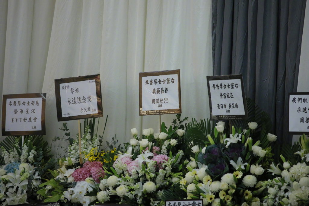 追思会现场也到了多位明星,如周润发、古天乐、成龙、周星驰、任达华夫妇、万梓良、陈法拉、林峯等人都献上了花圈表达自己的哀思,李香琴生前与这些后辈们关系非常好,是亦师亦友的。
