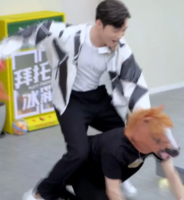 可以看到,这期节目要求表演节目,到了王嘉尔这一组的时候,就只有一个马的头套了,就是说必须要有一个嘉宾当马。一开始很多嘉宾都说要当这个马,甚至有人还对王嘉尔说,要不你来骑我吧。但是没想到王嘉尔全部包揽,他是一个很玩得起的人,毕竟是从那些夸张的韩国综艺出来的,王嘉尔又非常善良。没想到他当马,也是很是实诚的当,完全还原了被人骑着的动作。