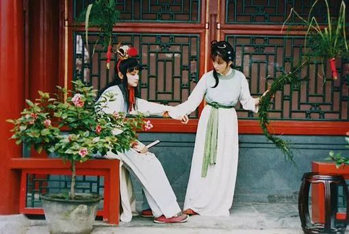 第二十八回《蒋玉菡情赠茜香罗,薛宝钗羞笼红麝串》,黛玉与宝玉闹别扭,便独自葬花,悲悲切切吟出一段词,宝玉闻之心中难过,便于山坡上大放悲声。