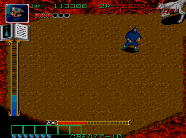 该角色的特性是“对毒免疫”,这一点似乎和角色本身的职业没有任何的关联,实在是想不明白「data east」的脑洞,而且因为攻击范围仅有前方直线这一点。所以,在日常的游戏中很少会有人来选择他。
