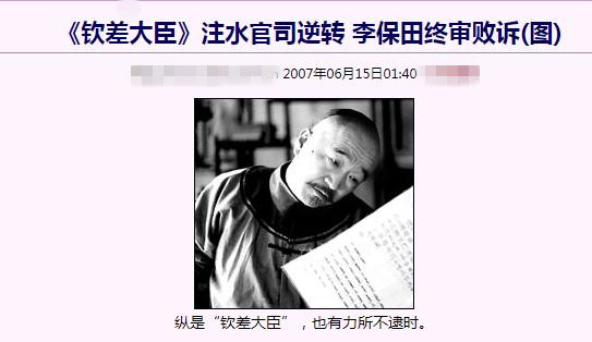 不过后来在拍摄电视剧《钦察大臣》时,李保田遭遇剧集“注水”,原本30集的剧情被剪成了33集,李保田一怒之下把投资方告上了法庭,索赔190万,官司一审时胜诉,二审败诉,李保田不同意和解,一分钱赔款没拿到,还负担了两万多的诉讼费用,而且此后更遭到多家影视公司联手抵制,还流传出了李保田是戏霸的传闻。