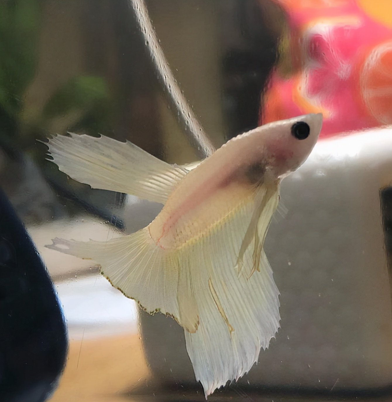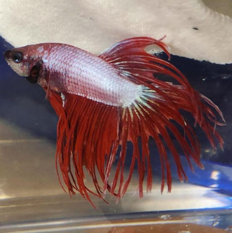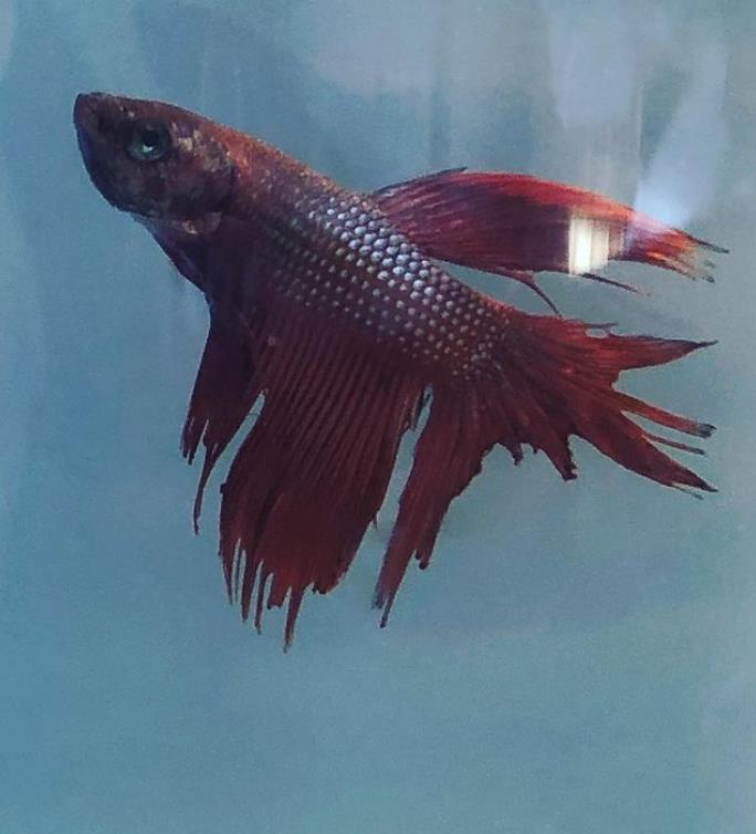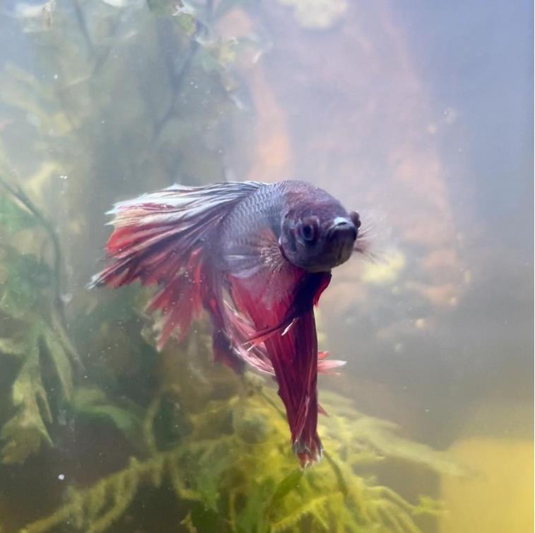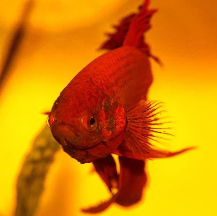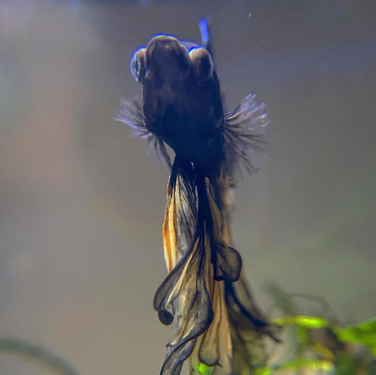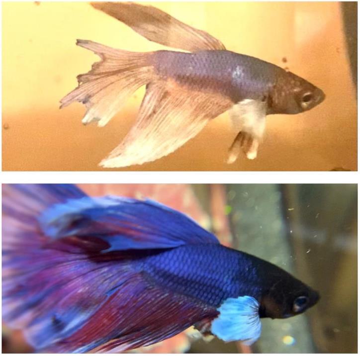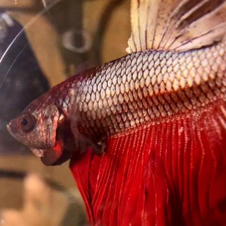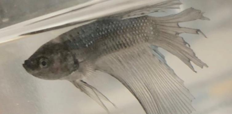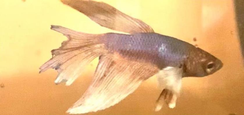 而且尾巴严重腐烂,不像健康的斗鱼一样,有漂亮的颜色和飘逸的鱼尾。