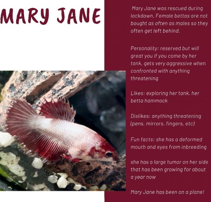 mary jane就是holland救助回来的一条残疾斗鱼。