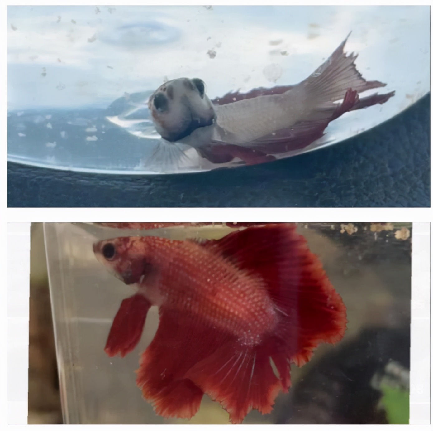 当时鱼缸里的水十分浑浊,斗鱼在那里呼吸苦难,几乎不动了。