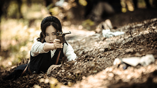 前情中,左小青饰演的女游击队长陆敏英为了掩护林清文(刘以豪饰)等人离开,与日本侵略者拼死一战,炮火夹击下几近全军覆灭,陆队长英勇牺牲看哭观众。镜头扫过,战火映红陆敏英脸庞,面对敌人猛烈的火力进攻,她双唇紧闭,目光如炬写满决绝与无畏。左小青诠释出了陆敏英身上对“信仰”的坚持与“信念”的执着,作为阿梅的左小青是外柔内刚的,而作为陆敏英她则是英姿飒爽、勇往直前。