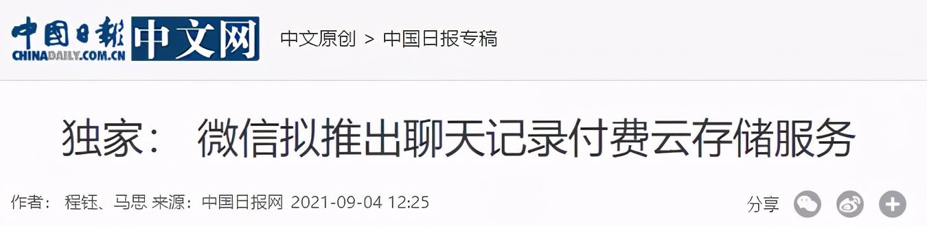 根据这篇文章的说法,微信这个聊天记录云存储的功能,可能采用按年付费的模式。
