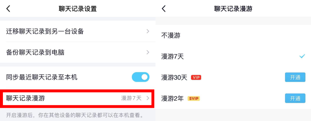 需要注意的是,qq上「聊天记录漫游」的功能,是可以免费使用的。一般情况下,所有的聊天记录都能够存储7天,并且能够在任何设备中查看。
