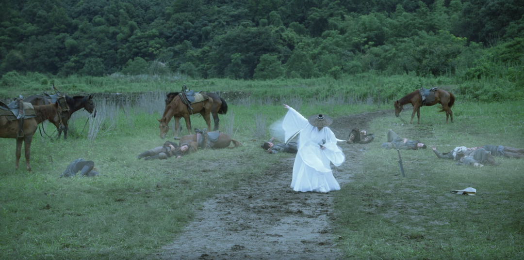 这白衣飘飘的侠女模样动静之间尽显美感,甚至有网友表示,其造型让人隐隐间想到巅峰港片时期的林青霞。