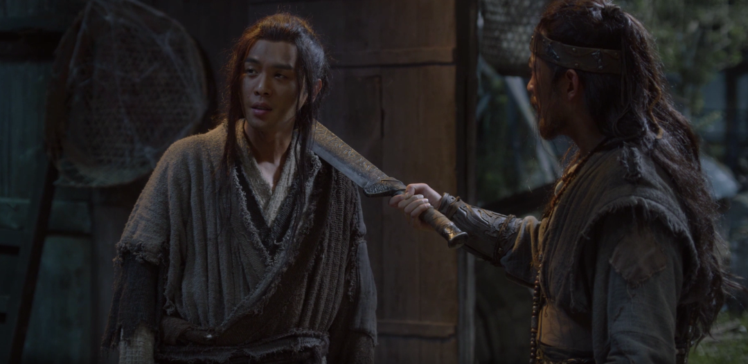 确定四下再无武林高手后,他对着毫无武功的男主拔刀相向。