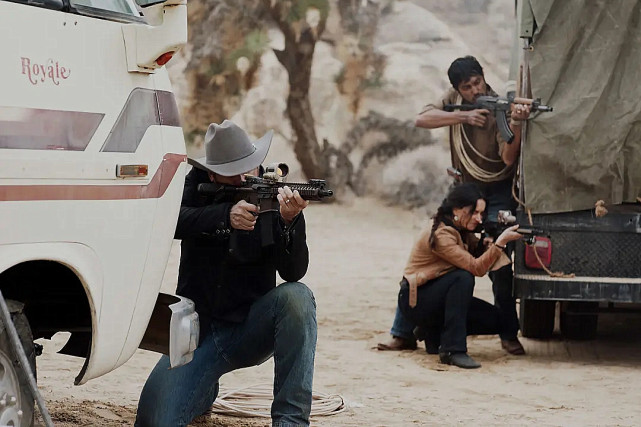 到了电影的后半段,这群人必须不顾一切向前冲,在最后边境小镇遇到的围城伏击,一切突然变得危机四伏,画面还用上了一镜到底的拍摄方式、聚焦这家人的生死瞬间。