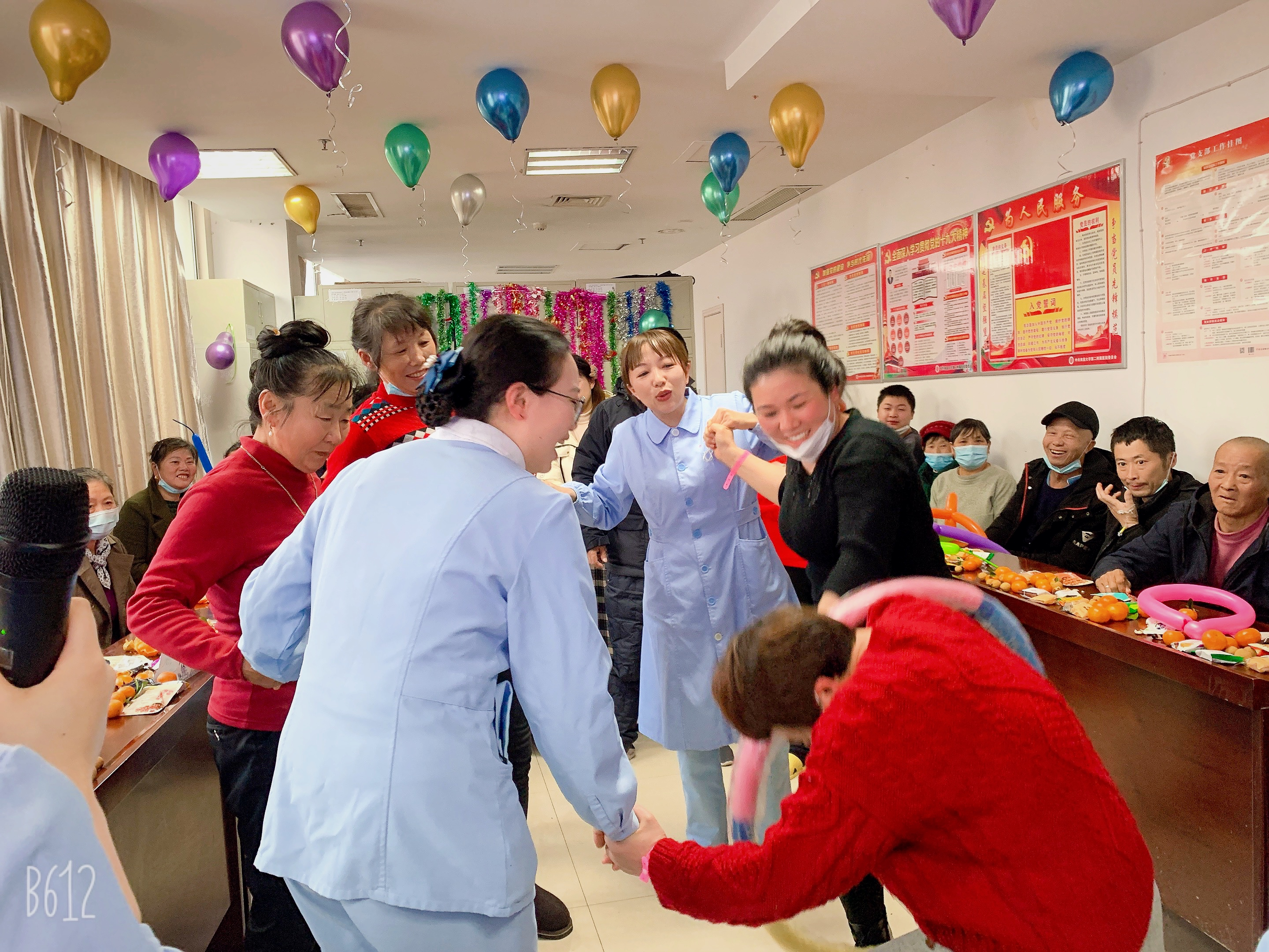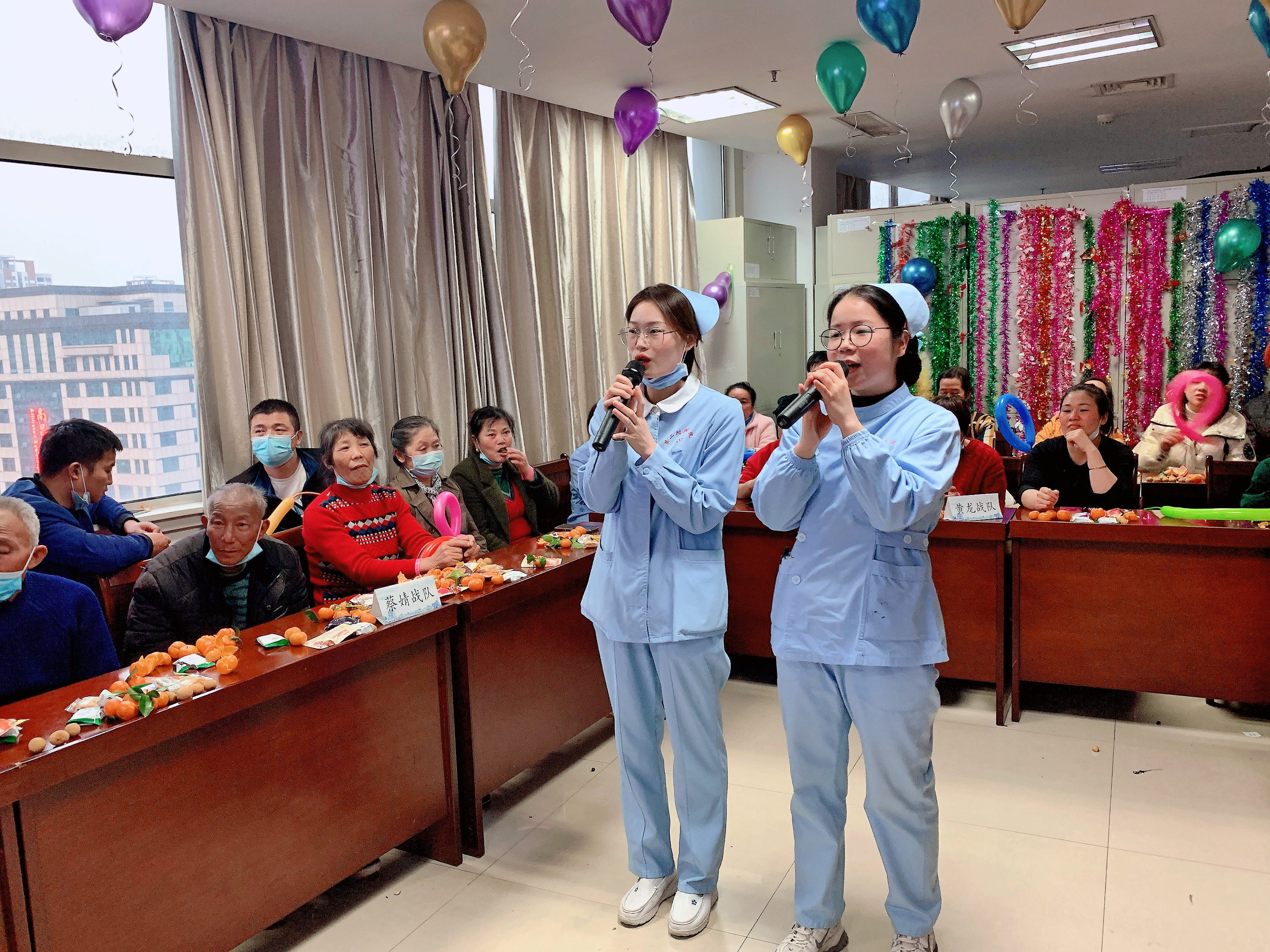 下午四点半一到,病房走廊热闹起来,瞧!黄龙医护患组成的“生龙活虎、虎虎生威”队整齐划一地向我们走来,蔡婧医护患队高呼“一路婧'升,节节高”也紧随而至,最后,魏建平医护患组成的“平安喜乐、其乐融融”队也有条不紊入座。