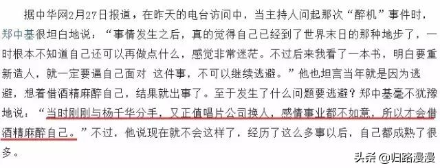 三年后,他才敢在电台访问中说起,那时酗酒的原因,是事业低潮,再加上与杨千嬅分手……
