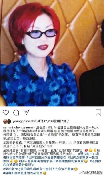 最后郑秀文认领了这张照片,她自嘲道:“我估计拍照前狂饮了十碗超级味精麻辣火锅汤加七包薯片,会有如此十级饱满的效果。”