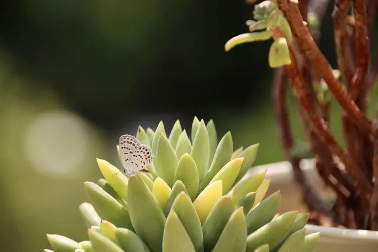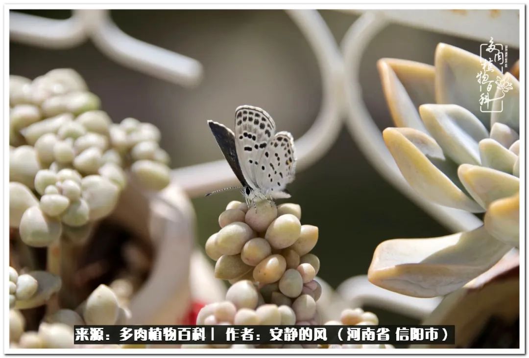 阳台偶尔有蝴蝶,抓拍了几张。(百科君注:这种蝴蝶是玄灰蝶,需要驱离,避免其在多肉上产卵,幼虫会啃食多肉,危害极大)