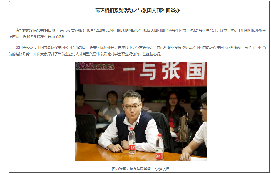 曾在清华大学环境学院的某个活动上,也能见到校友张国夫的身影。