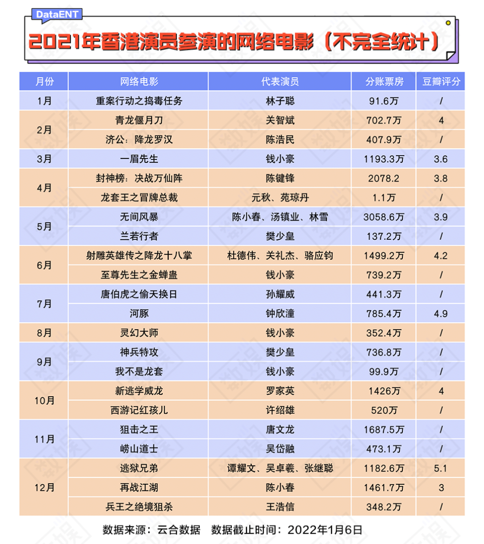 回顾2021年的网络电影,不仅12月,网络电影式港片可以说从年初盘踞到年末。内地市场渐趋饱和,北上的港星们投身网络电影的现象早已不再新鲜。