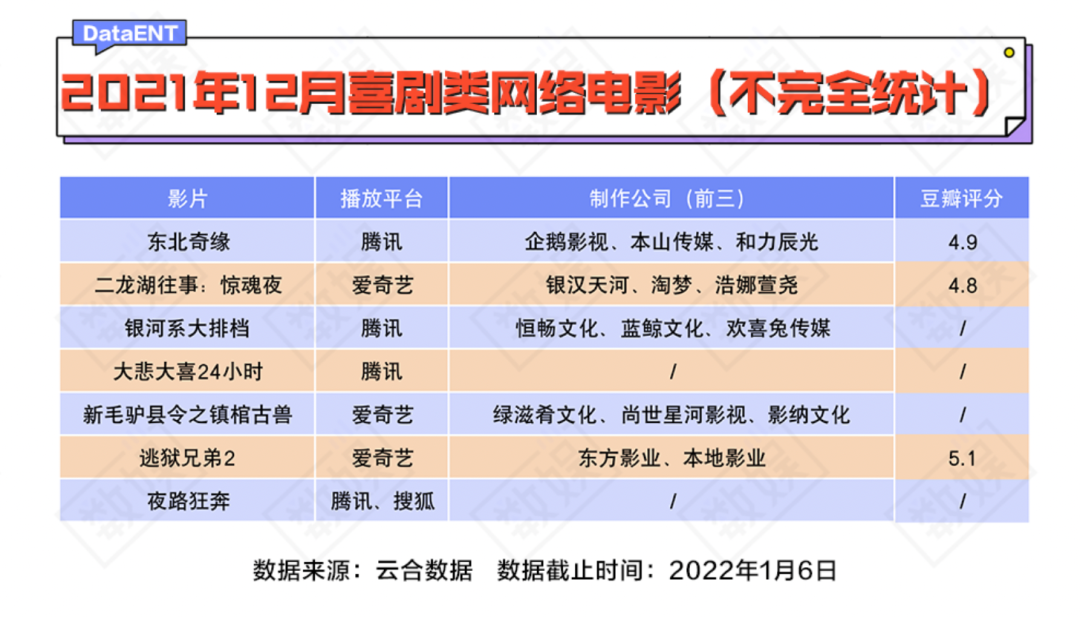 从21年12月的网络电影数据,已然可以窥见到“提质减量”要求的初步成效。