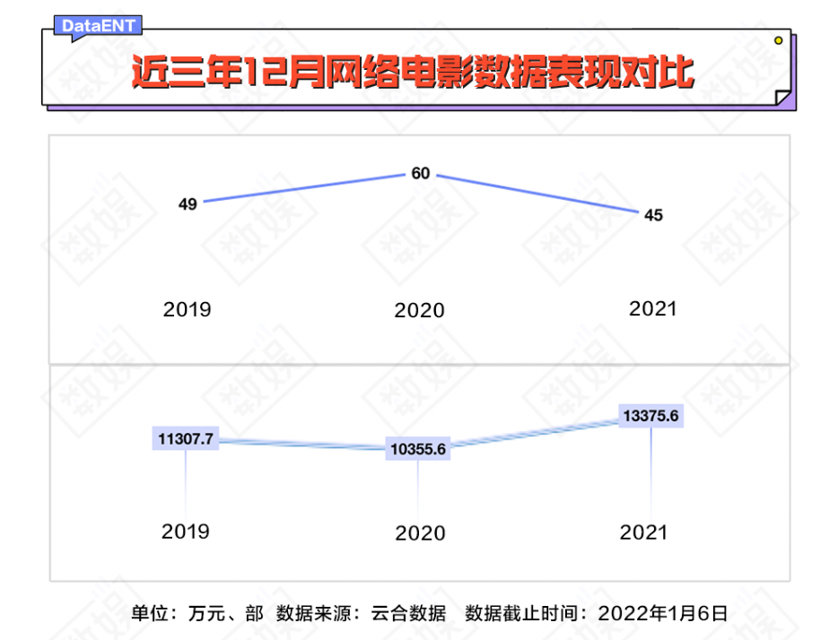12月网络电影总票房和播放量的提升,也给21年的网络电影赛道收了一个不错的官。