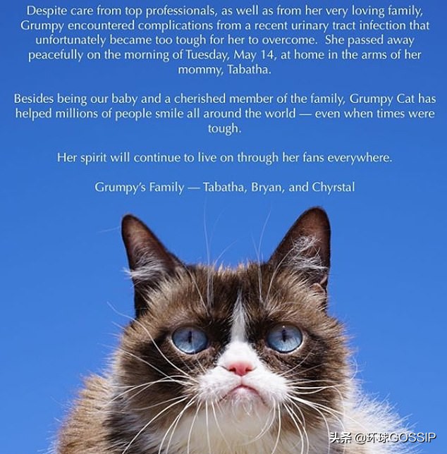 可惜的是,这只著名的“暴躁猫”在两天前因病离世。