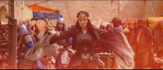 这版预告,还完整曝光了女巫(巩俐饰)的致命招数,她不仅能挥手发射凶器,还可以变身飞鹰