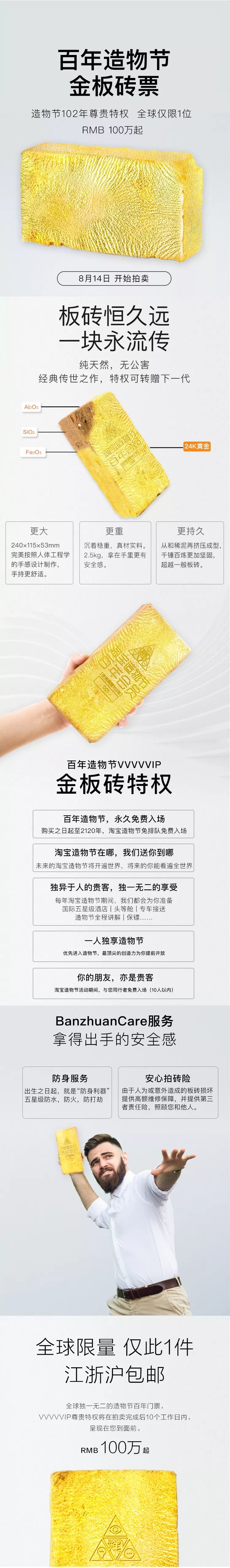 对于拍下这块金砖的“矿哥/矿姐”,淘宝造物节将严格对本人进行核销和身份验证,以保障承诺的兑现。
