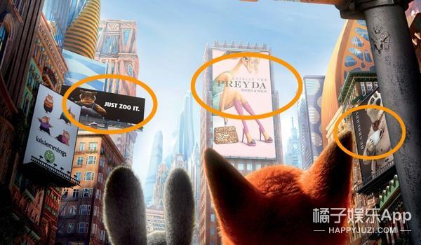 仔细看这个广场,会发现老虎的代言口号是会just zoo(do) it。当红明星夏奇拉羚羊,则为动物世界的preyda(prada)代言。