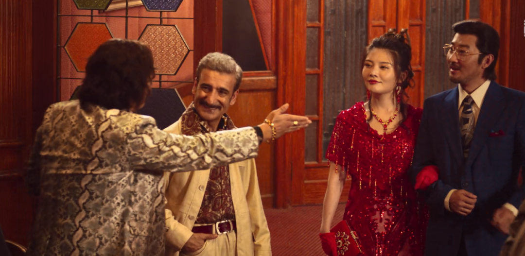 " 而换上一身现代装后,我们则随着警匪片的节奏,直面红与黑的正面对抗。