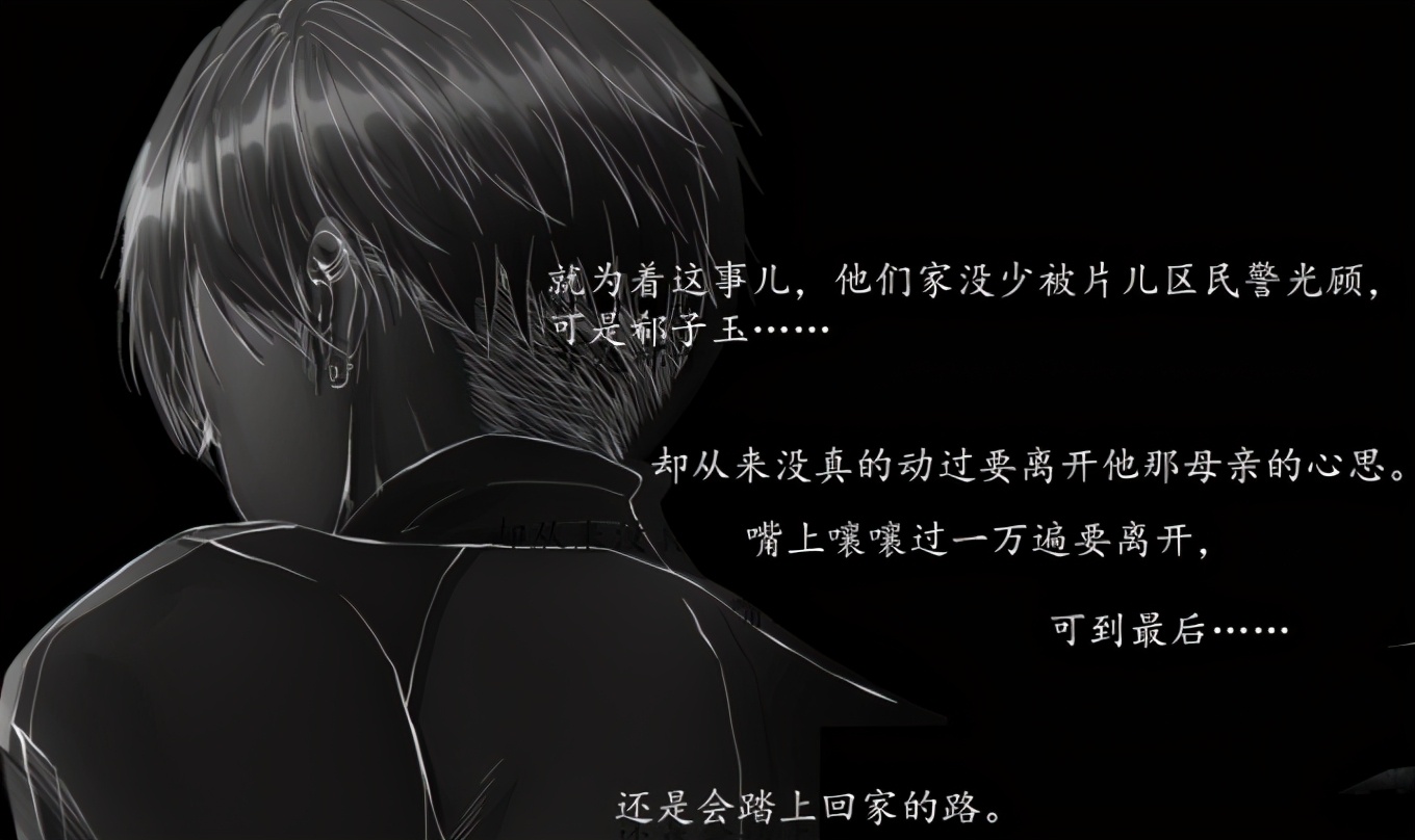 但他的妈妈也不是没爱过他,在他还很小的时候,妈妈也是用尽了力气在对他好。像天下所有母亲那样,倾尽全部在爱着她的孩子。可是后来,这些美好的记忆,都成了郗子玉自缚的茧。牢牢地把他困在了说不出的苦里。不管多疼!多烦!多难受,他都只能忍。忍到人前再也不会哭,忍到无论何时都只会笑。
