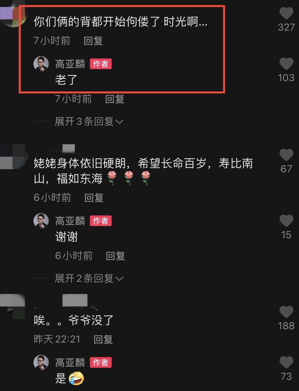 评论区的网友感慨时间过得太快,两位主演的后背都开始佝偻了,并祝福姥姥身体健康、长命百岁。