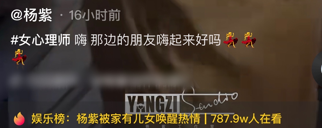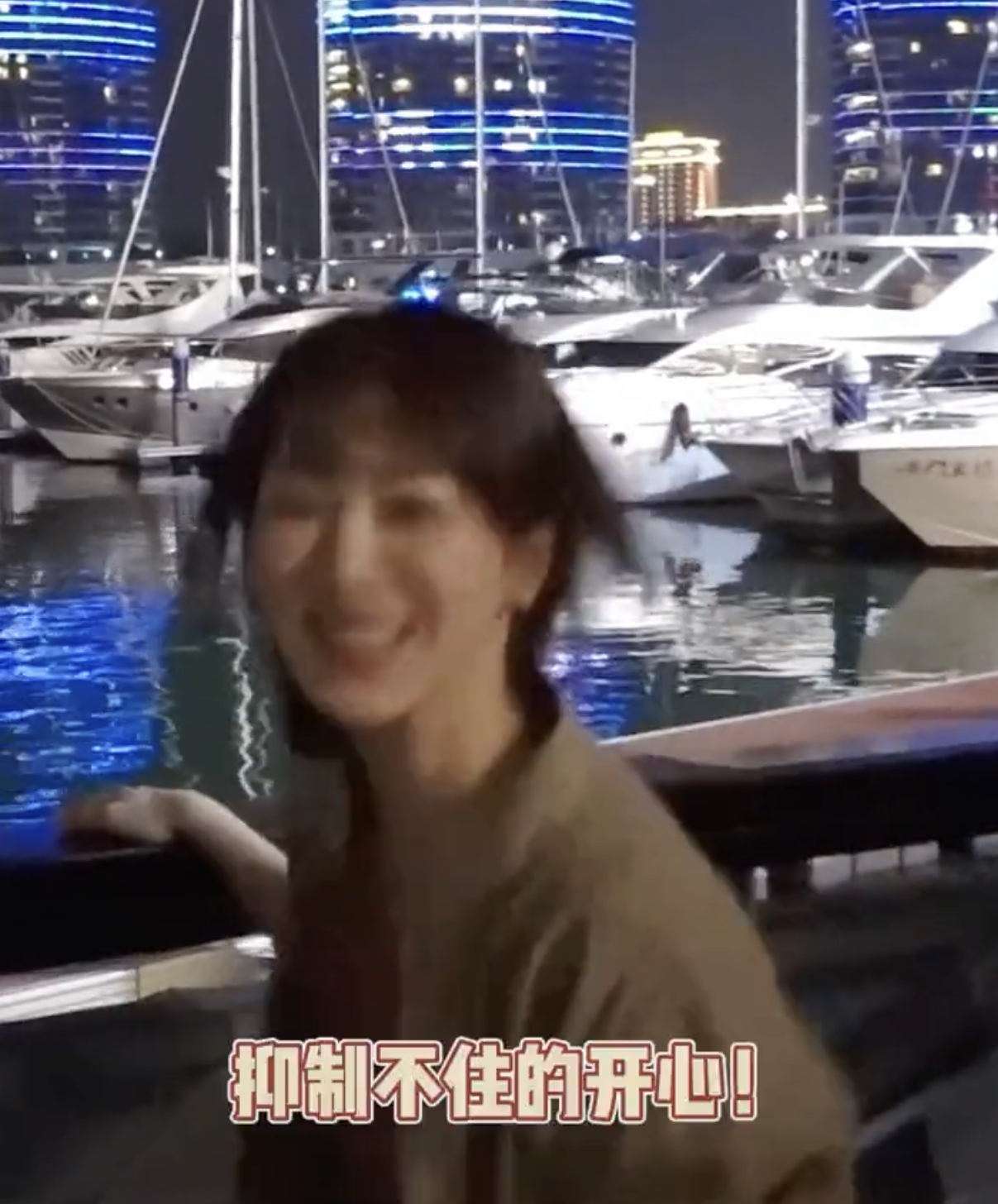 杨紫在船上听到对面有人在放《家有儿女》主题曲,便高兴地手舞足蹈,跟着音乐节奏一起唱歌,喜悦之情溢于言表。