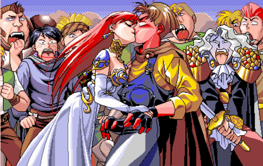 不过他的运气很好,刚好是第一千位参赛者,获得了公主的热吻。其他人眼睛中都要冒出火了。