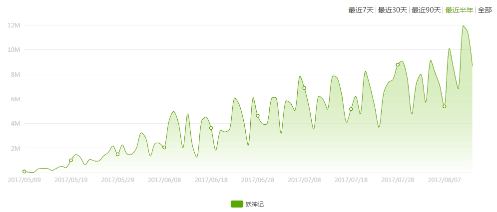 2017年的流水账已过三分之二,《妖神记》第一季的播放已过四分之三,这部由美盛动漫、若鸿文化、掌阅科技、趣阅科技联合出品的国产原创3d动画网剧播出至今的三个月间,热度不减反增,收视节节攀升。