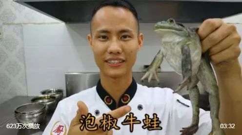 再来说说那位美食博主王刚,虽然现在同行竞争激烈,会用微波炉做方便面的人都好意思叫自己“美食博主”。不过,王刚自成一派,大杀器就是连收拾食材的过程都要记录下来。最经典的一幕,应该是为你重现童年时的生物课——“xx牛蛙”。