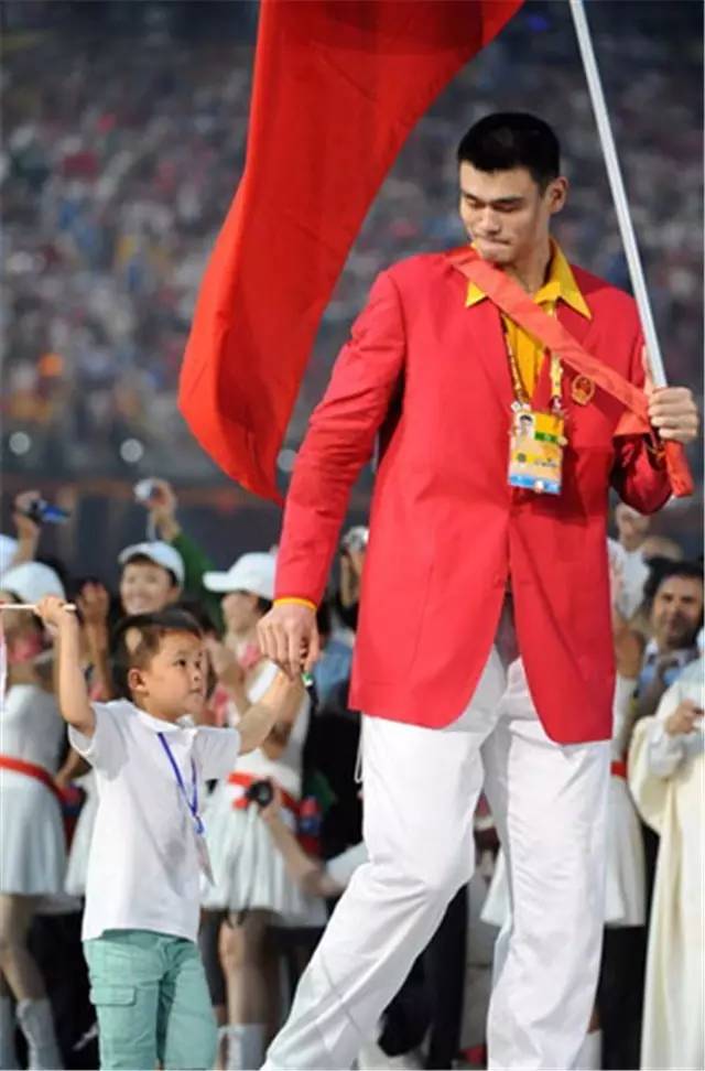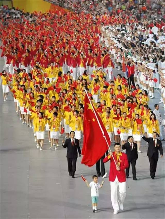 北京奥运会开幕式中国代表团入场时的旗手,是前国家队男篮运动员姚明。同时中国体育代表团也充分展示了我们地大人多的特点:中国代表团共有1099人出场,其中运动员639人,官员及教练员、医生、工作人员460人,真正成为中国参加奥运会历史上人数最多的一次。