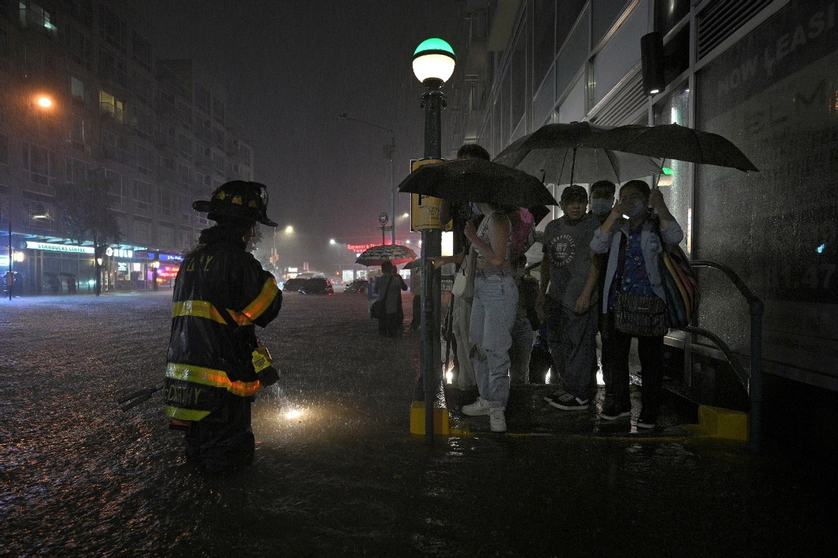 1日傍晚,纽约的罗斯福大道被淹没,地铁站和轨道也被灌满了洪水,社交媒体上的视频显示,地铁乘客站在水中。纽约市的主要道路上,许多汽车被淹没,垃圾漂浮在水面上。到了晚上,纽约纽瓦克自由国际机场所有航班暂停,所有停车场关闭,前往机场的所有火车服务也已暂停。据报道,这场大雨是飓风“艾达”残余影响。
