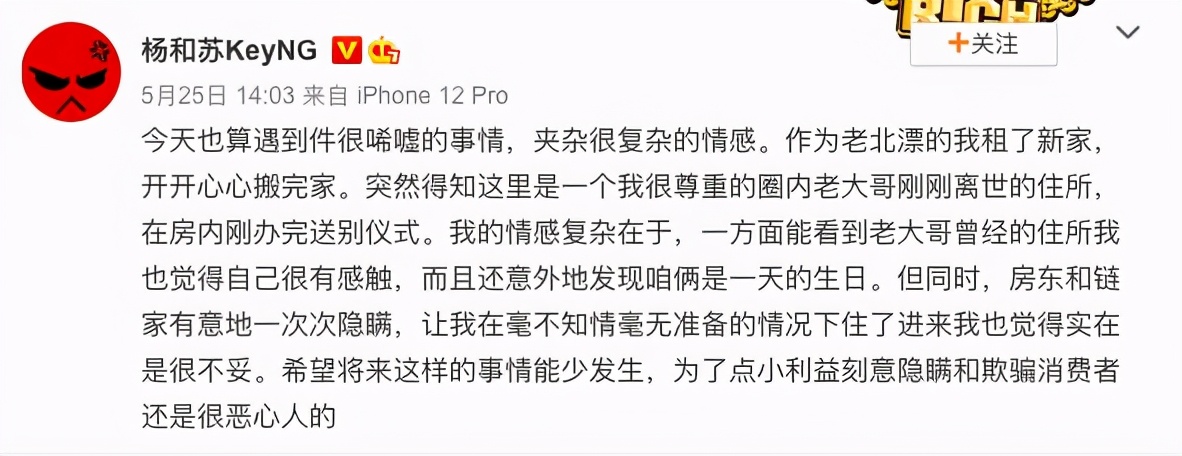 今年五月末,嘻哈歌手杨和苏刚搬到新家,却得知自己新搬的住所曾经住过一位音乐圈的前辈,并且他的生日竟然还跟这位前辈是同一天。