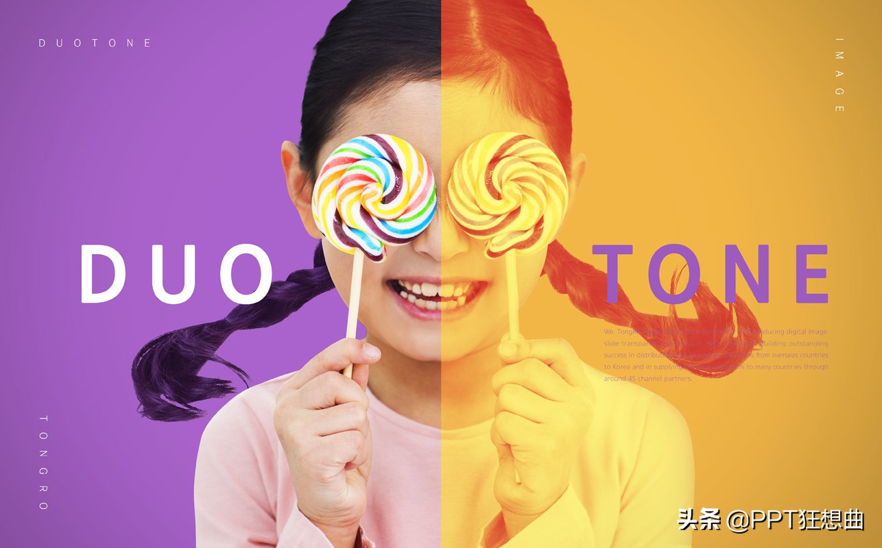 ppt设计不要求多么有创意,所以双色调用的更多的就是,为了让图片与背景的融合感更强,