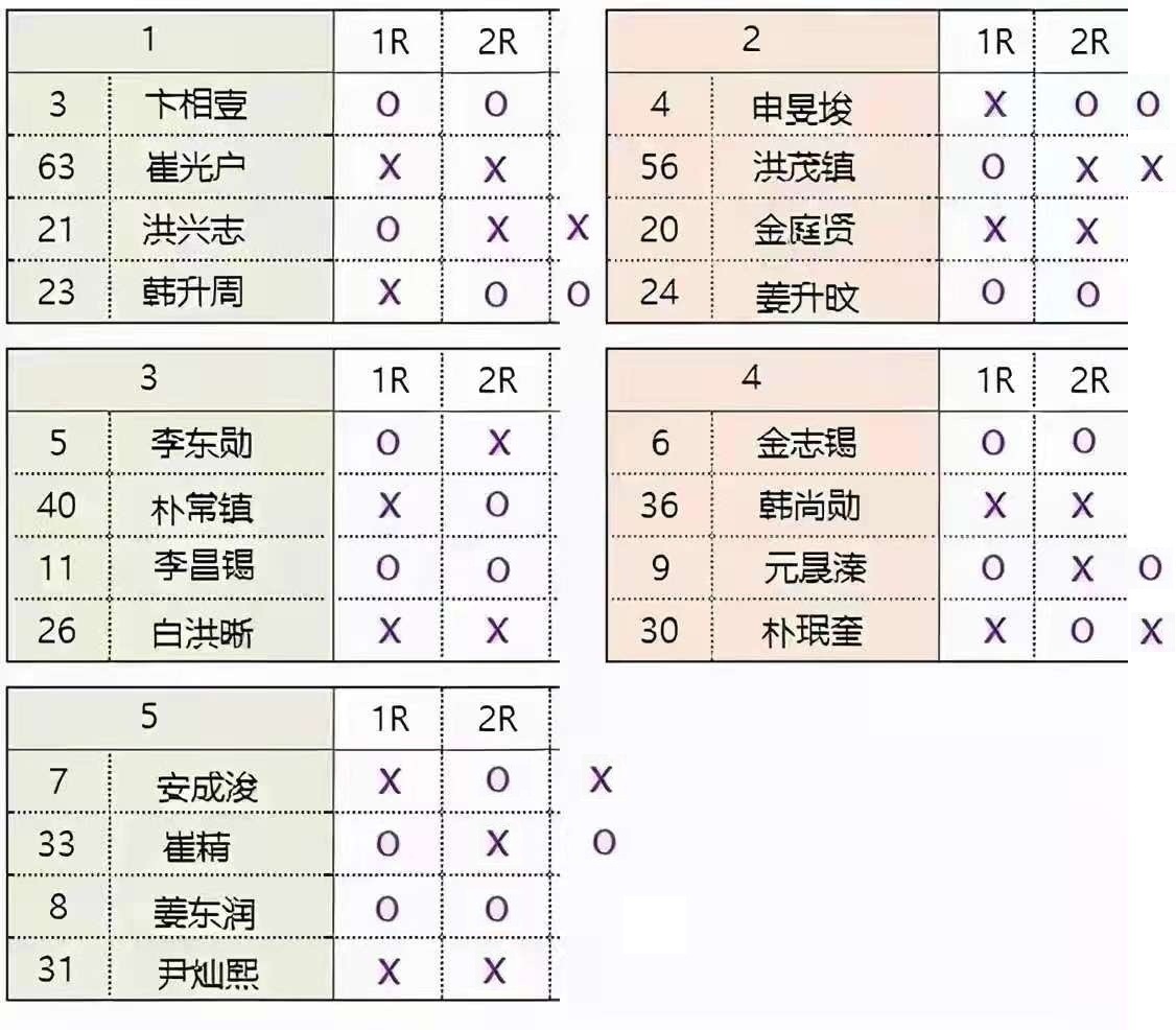 接下来的循环圈,将由韩国排名第一申真谞和排名第二的朴廷桓分别加入两个小组,每组6名选手中,其余5人将按第三轮预选出线选手排名,再进行顺序抽签决定。10名出线选手中,等级分排名第1,2位的选手(申旻埈、卞相壹)将分别位于不同小组,以此类推。