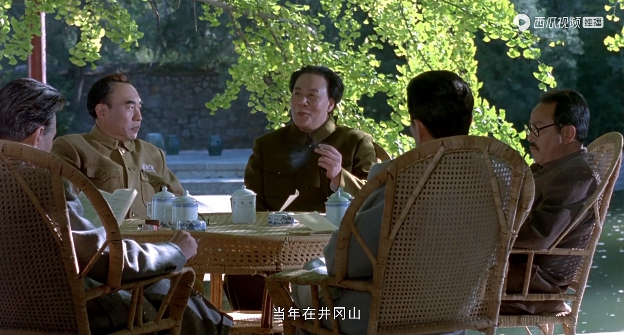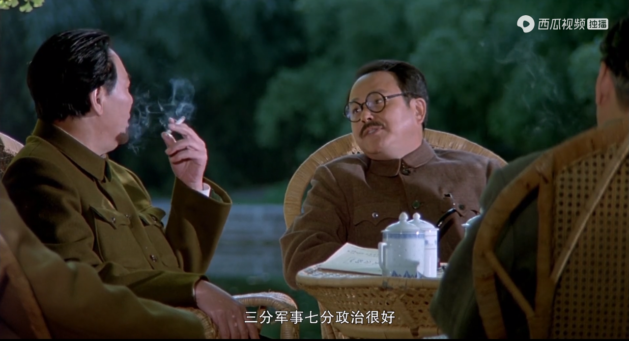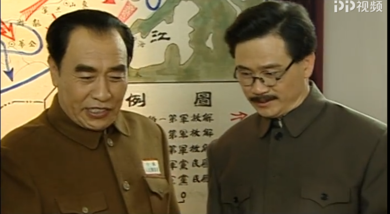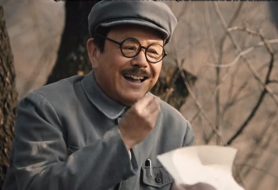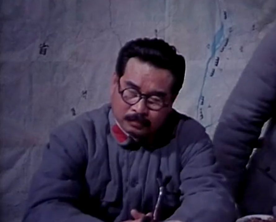 他在片中出现的机会并不多,主要场景,是我方领导集体在香山别墅里讨论进军全国的战略决策时,有着非常短促的出镜机会。