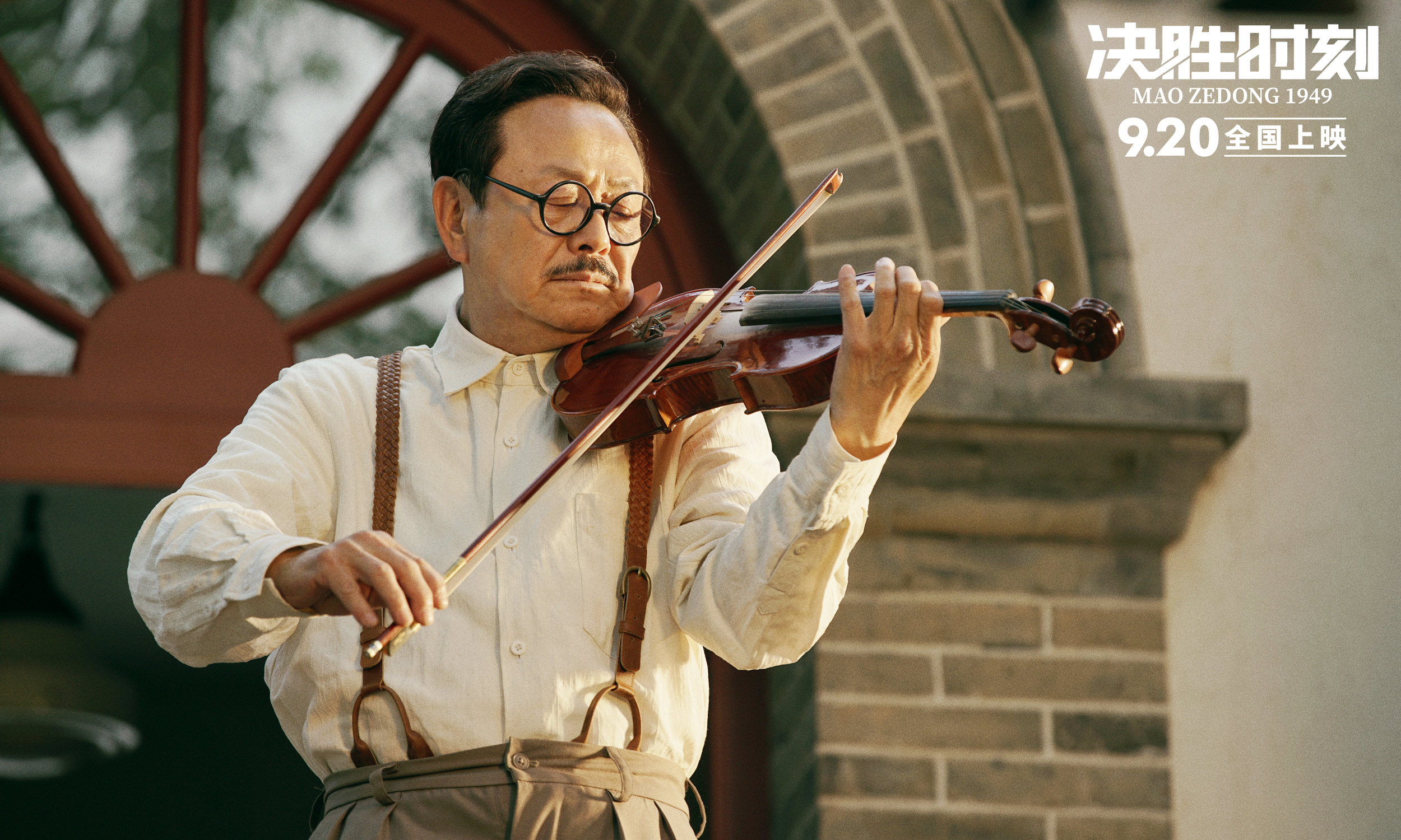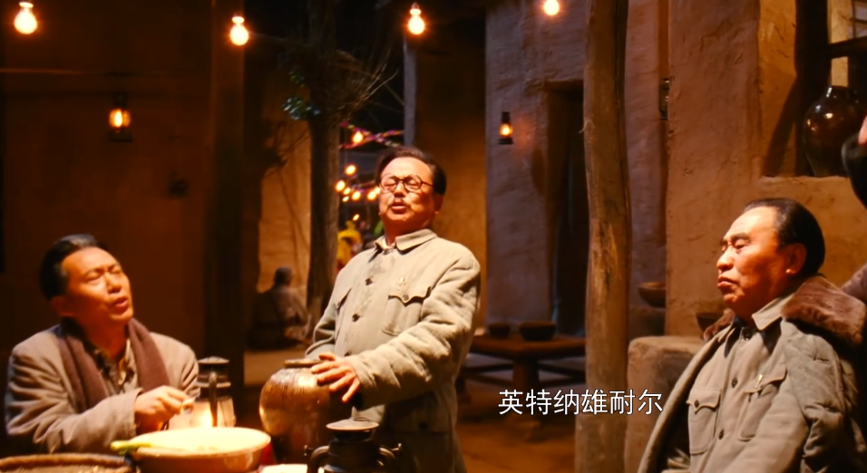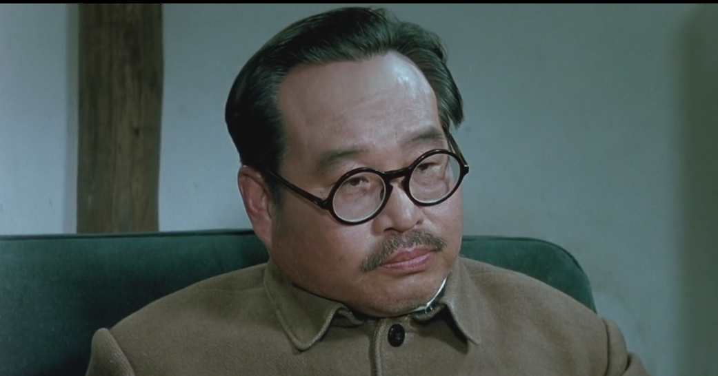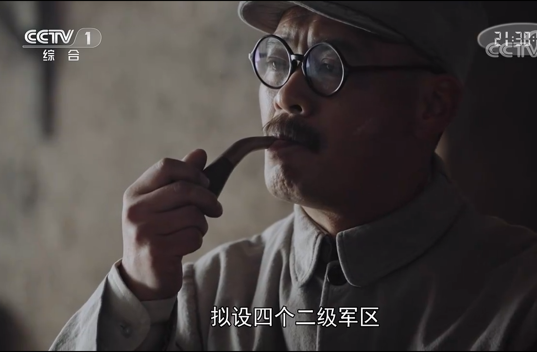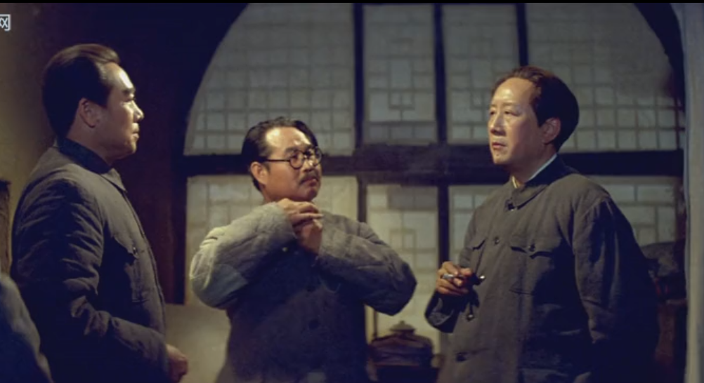 他在片中出现的机会并不多,主要场景,是我方领导集体在香山别墅里讨论进军全国的战略决策时,有着非常短促的出镜机会。