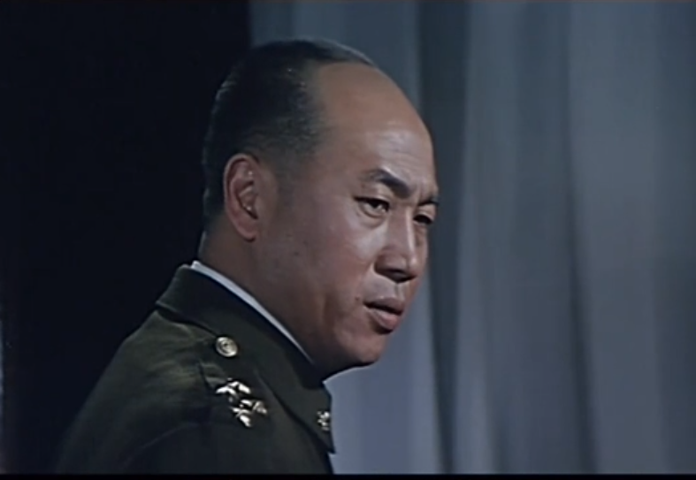 镜头里的王健,虽然扮演的是国民党军官,但看上去,很是憨厚朴质,一点没有路希扮演汤恩伯的那种阴险气息,这也为他日后能够捷快地进入任弼时角色的形象塑造,奠定了良好的外形条件。